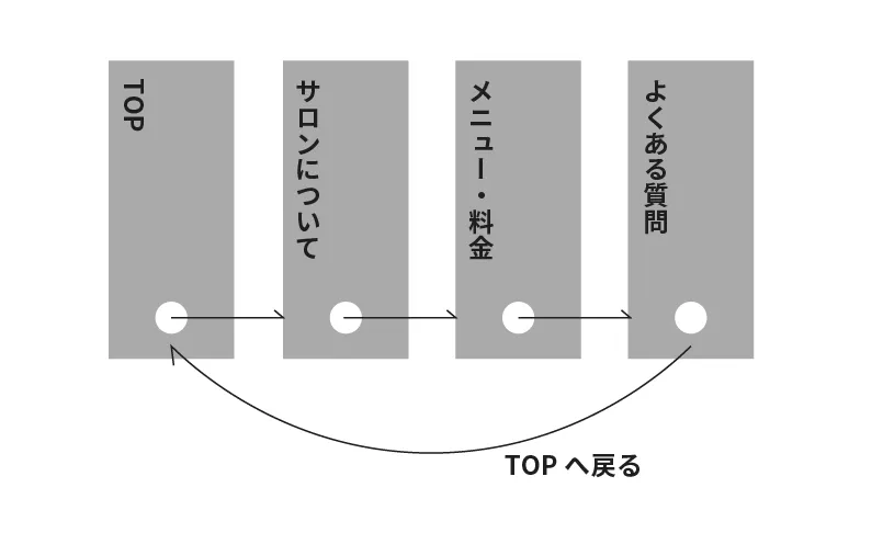 ユーザーを迷わせないナビゲーションとしても役割を持ち、一周することでサロンに関する情報を理想的な順序で提供することができます。